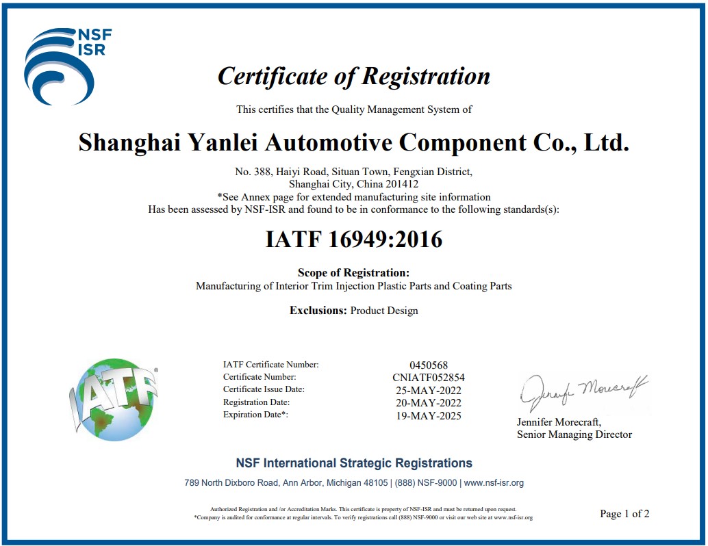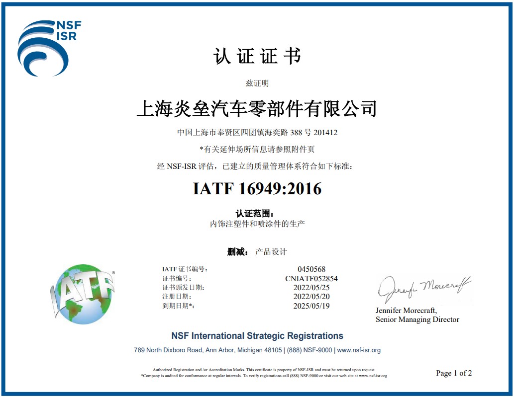 2019年5月份獲得了ITAF/TS 16949質(zhì)量管理體系認(rèn)證證書(shū)。